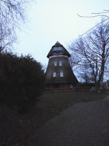 Am Ortsausgang kommen wir aber noch an der alten Windmühle vorbei, die auf der rechten Seite steht. Die Mühle ist in Privatbesitz und als Wohnhaus ausgebaut.